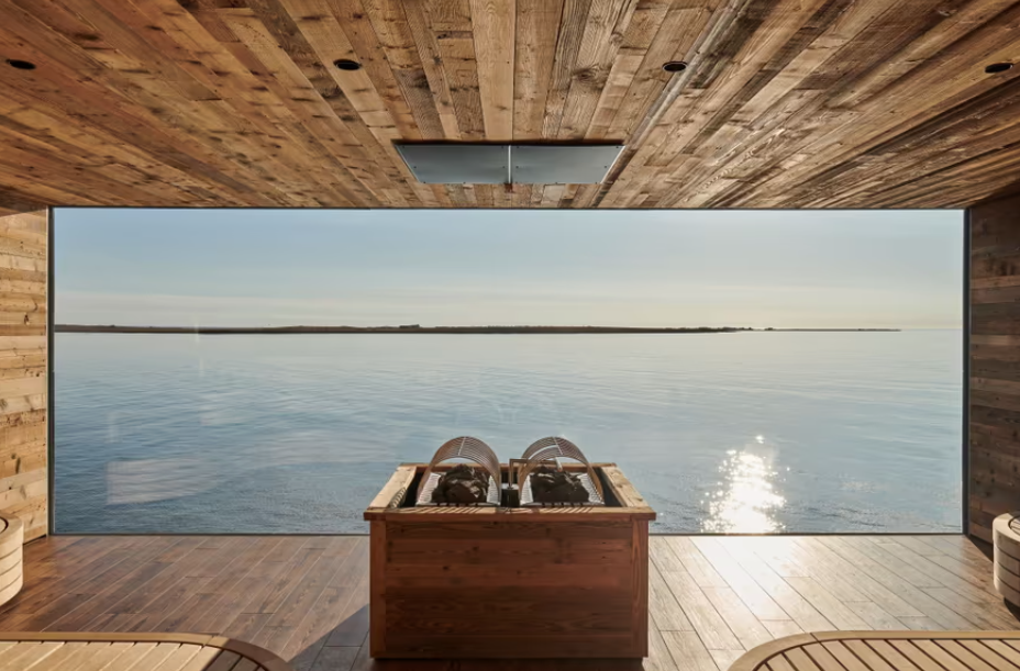 - Прием сауны с видом на бескрайние виды Атлантического океана (предусмотрено 2 зала – для тех, кто желает посещать парную со смартфонами и для тех, кто желает полностью уединиться и отвлечься от окружающего мира);