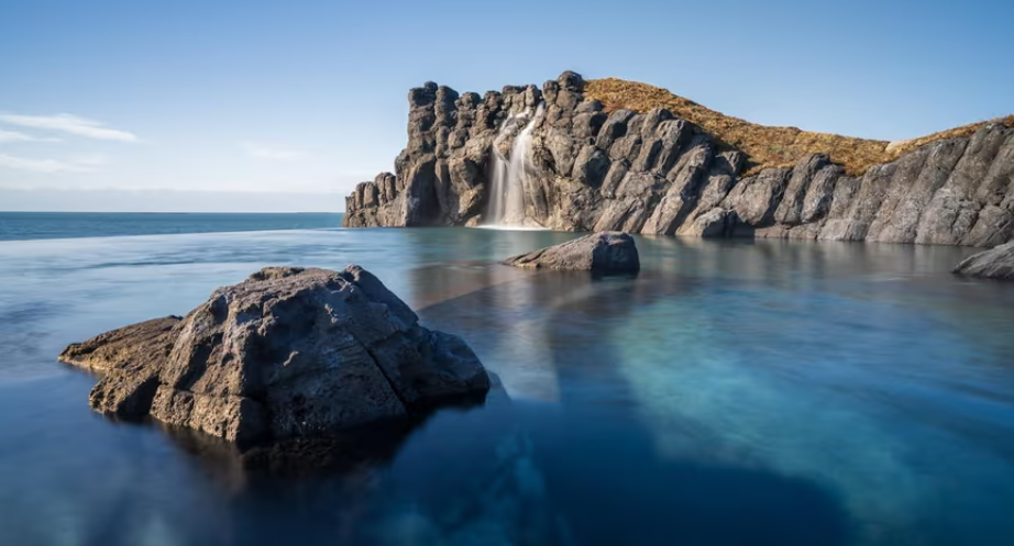- Погружение в горячие геотермальные воды Sky Lagoon общественного бассейна;