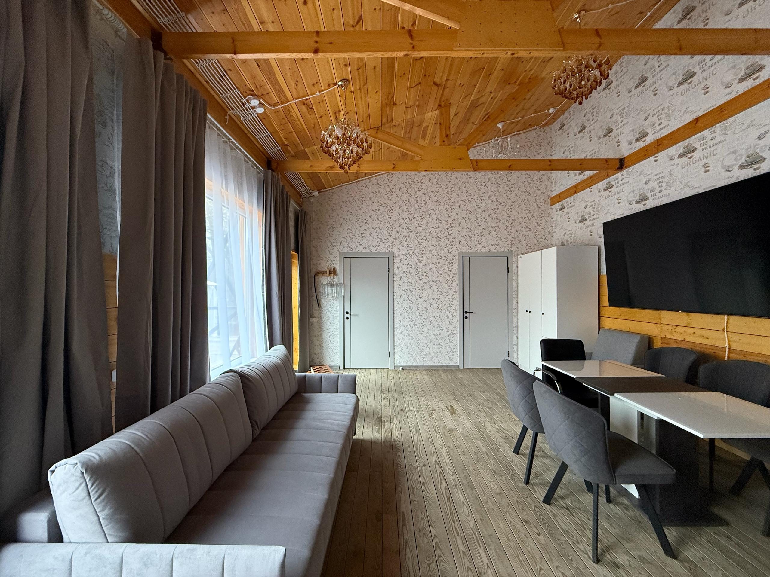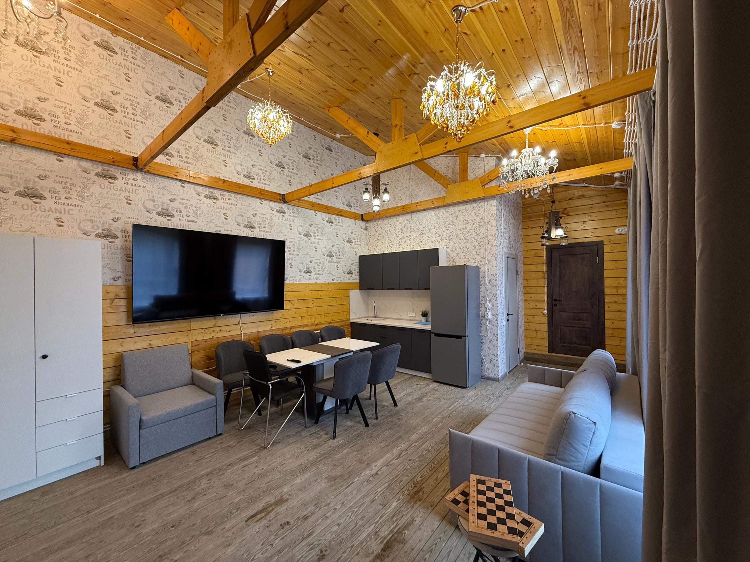 Просторный дом площадью 70 м² с отдельным входом и большой террасой. Подходит для размещения до 6 гостей + 1 дополнительного места. В доме две спальни, уютная гостиная с большим телевизором и диваном, полностью оборудованная кухня с плитой, а также ванная комната со стиральной машиной. Есть кондиционер и отопление для комфортного проживания в любое время года. На территории — шатёр и обустроенная мангальная зона, идеально подходящая для отдыха на свежем воздухе.